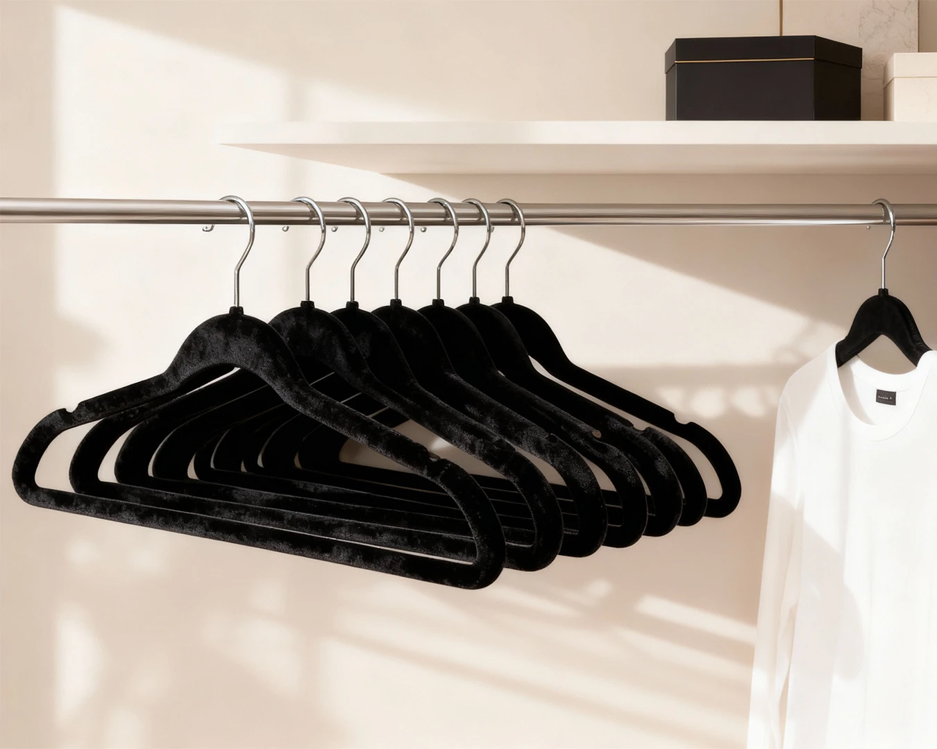 Cabide Aveludado – Kits com 3, 10 ou 25 peças. É compacto, não desliza a roupa, é elegante e funcional.