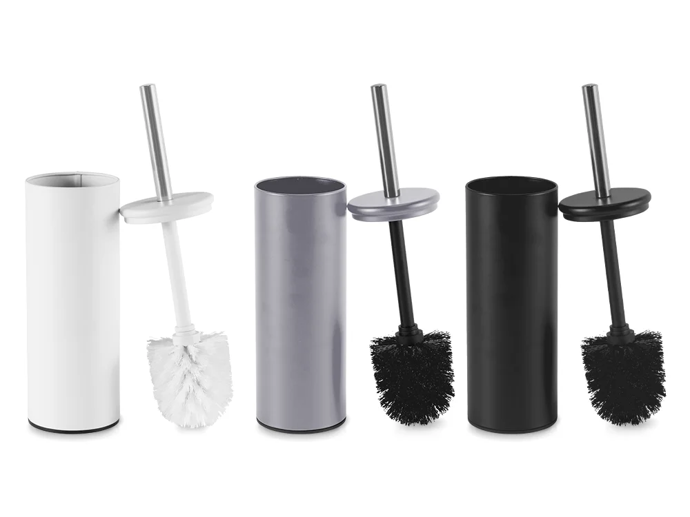 Escova Sanitária Matte – Cabo em aço inox, com cerdas resistentes e suporte para apoio.